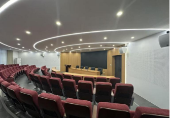 本网讯(教务处刘德强)2025年9月,我校睿智楼报告厅建设项目圆满完成。报告厅建设内容包含:大屏显示系统、扩声系统、灯光系统、智能控制系统(控制室),舞台、墙面、天花建设,控制室、贵宾室、化妆间装修,主席、观众桌椅、空调系统,声学改造。项目于2025年7月初开工建设,9月8日完成建设投入使用,建成先进多功能报告厅,为学校开展高水平学术报告提供了有效的支撑与保障。